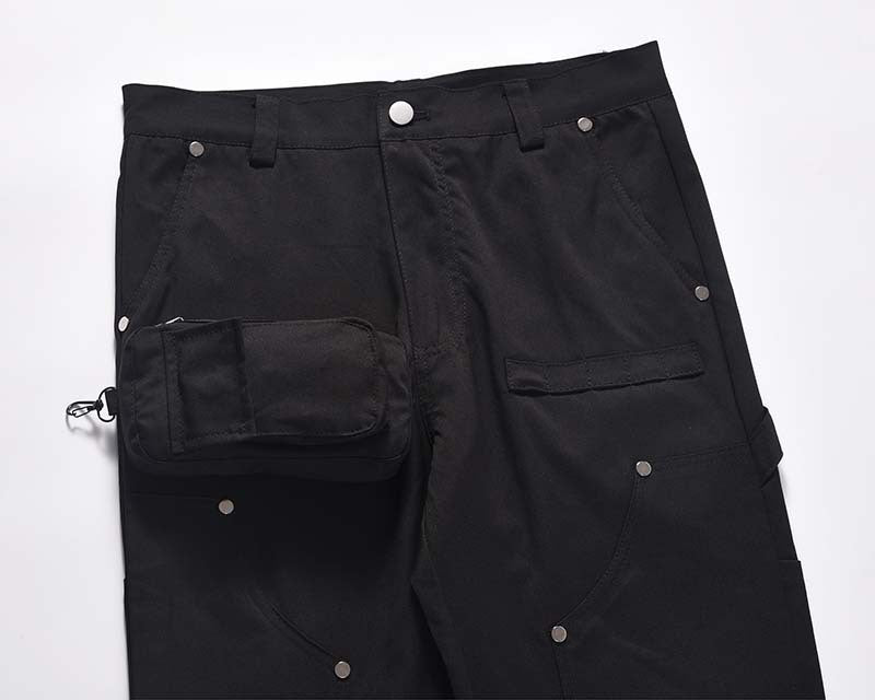 The slightly flared, wide-leg cut adds a retro-inspired silhouette, while the decorative rivets give the pants a unique, functional streetwear vibe. With micro elasticity for comfort and a mid-waist fit, these pants are perfect for fashion-forward men who value both style and ease. Ideal for casual outings, parties, or everyday wear.