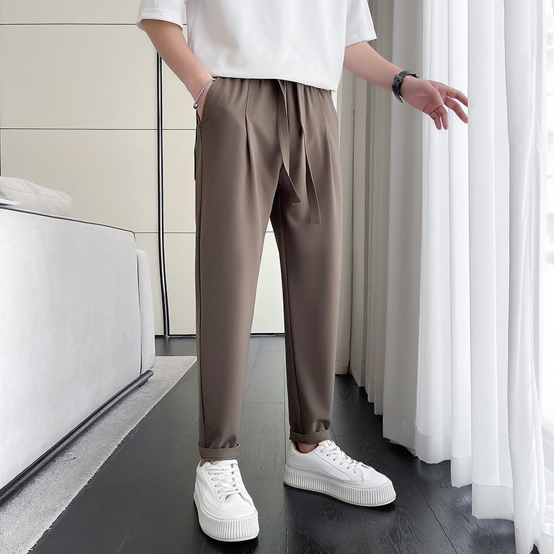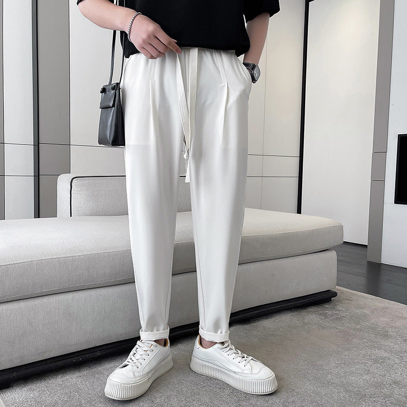 Stay cool and stylish this season with the New Skinny Slimming Ice Silk Casual Cropped Pants for Men, designed for comfort, breathability, and modern flair. Made from high-quality polyester fiber, these pants feature a smooth ice silk texture that feels soft and refreshing against the skin — perfect for warm weather.