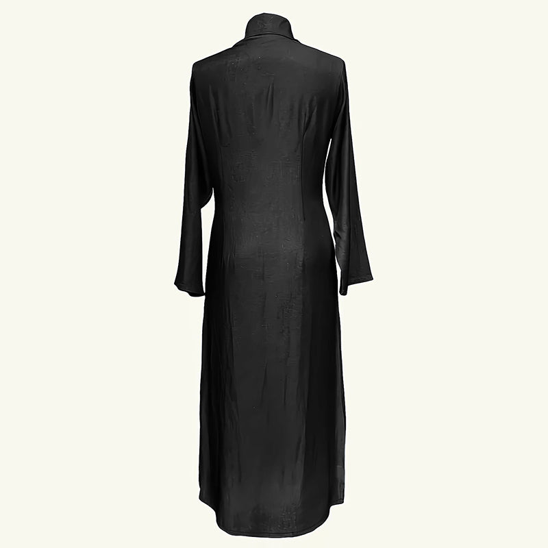 Step into effortless style with this versatile denim maxi dress that blends comfort with timeless appeal! This long sleeve button-down dress features a classic jean dress silhouette with functional side pockets , making it perfect for both casual outings and dressed-up occasions. The breathable denim fabric moves with you, while the long length drape creates a flattering fit.
